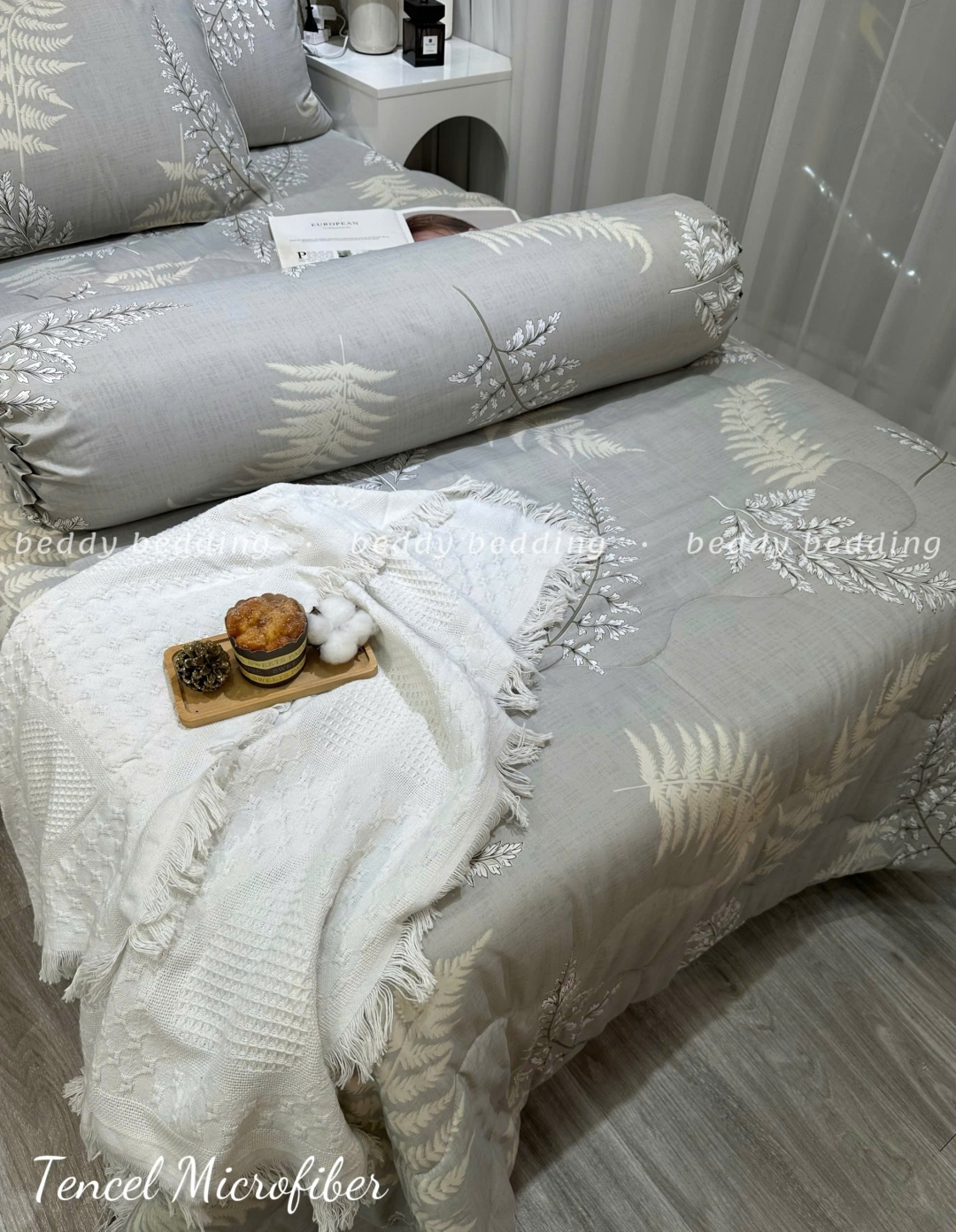 Tencel Microfiber được làm từ bột gỗ bạch đàn kết hợp 30% Polyester. Bột giấy này được hòa tan và kéo thành sợi, được dệt với nhau bằng công nghệ Nano để tạo ra một loại vải bền chắc nhưng vô cùng mịn màng, an toàn và thân thiện tuyệt đối cho sức khỏe của người sử dụng.