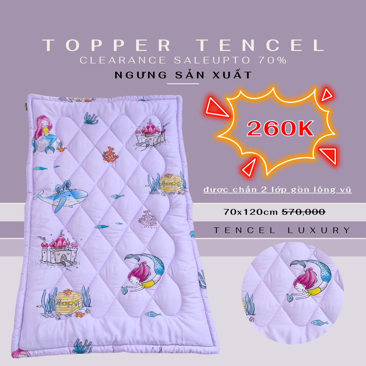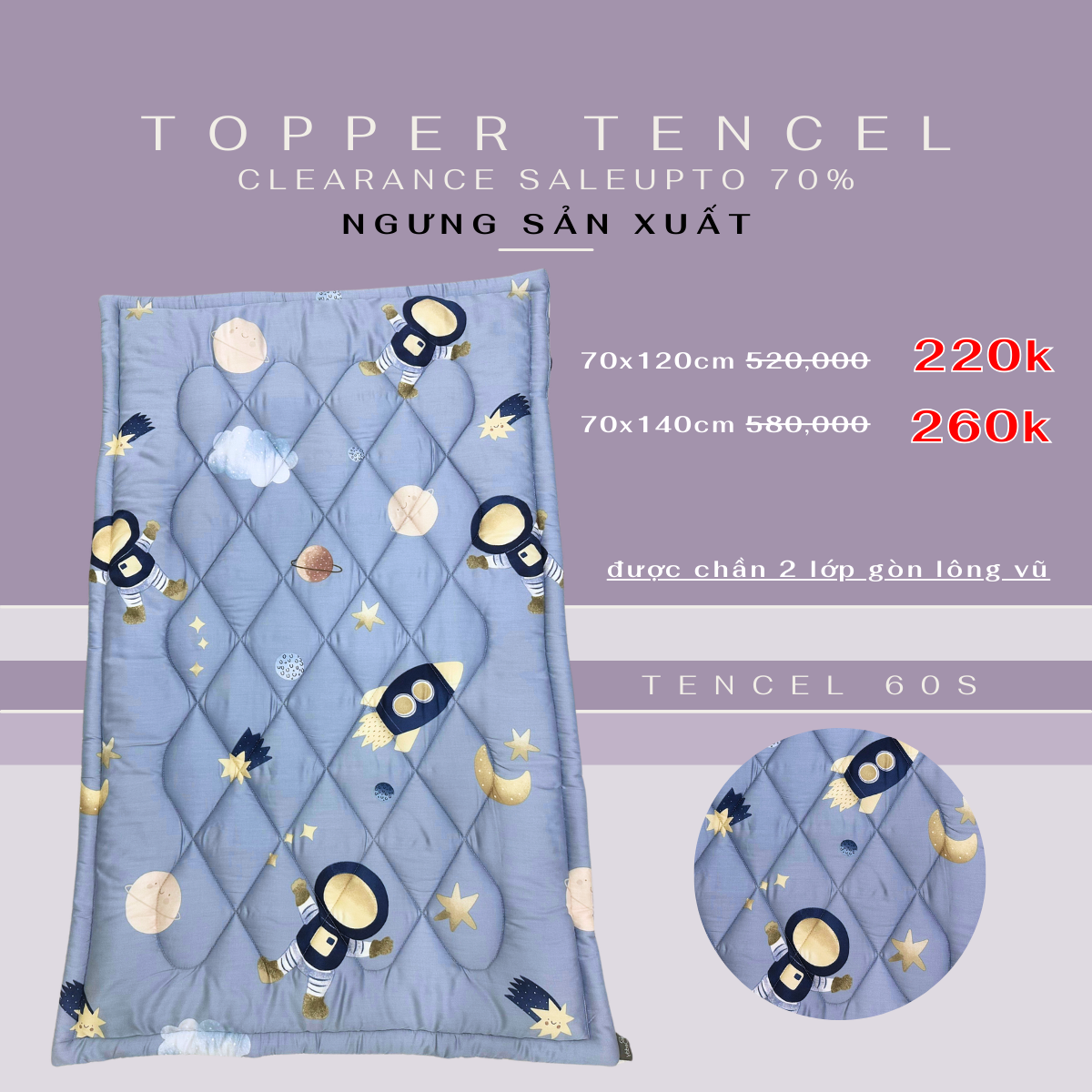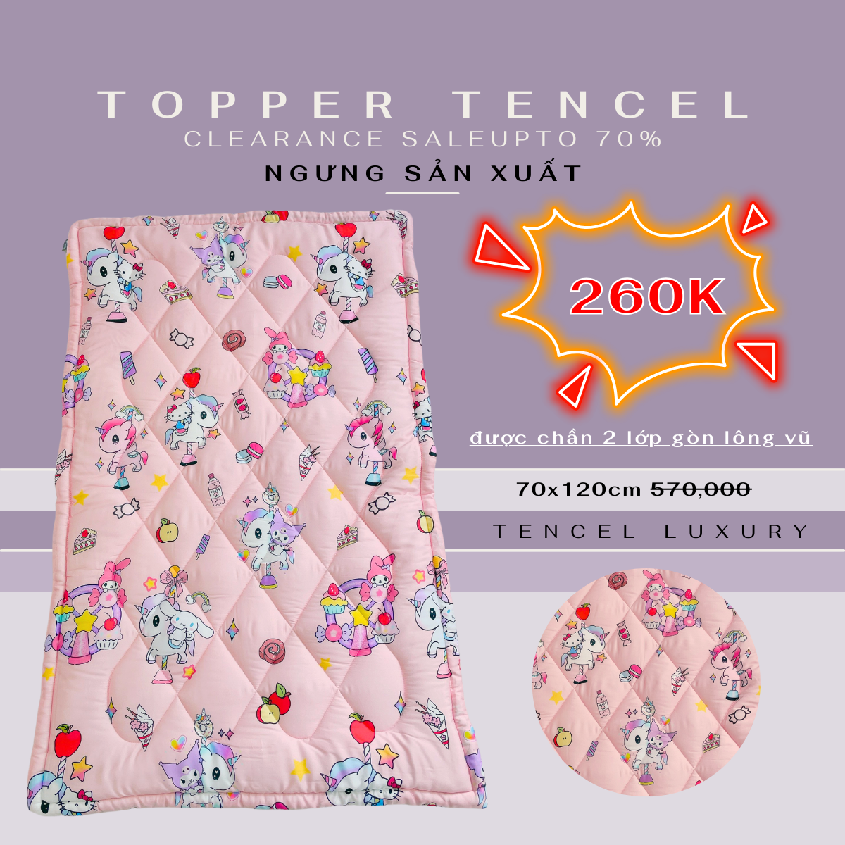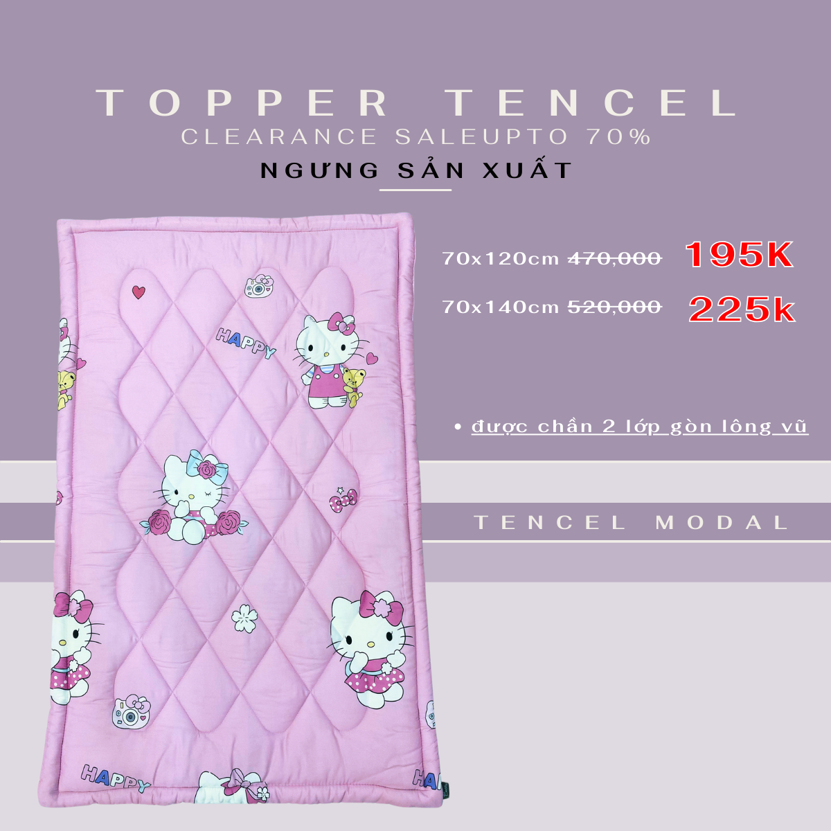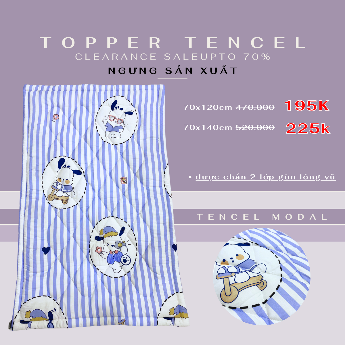 - Mặt trước & sau của topper đều là chất liệu vải Tencel